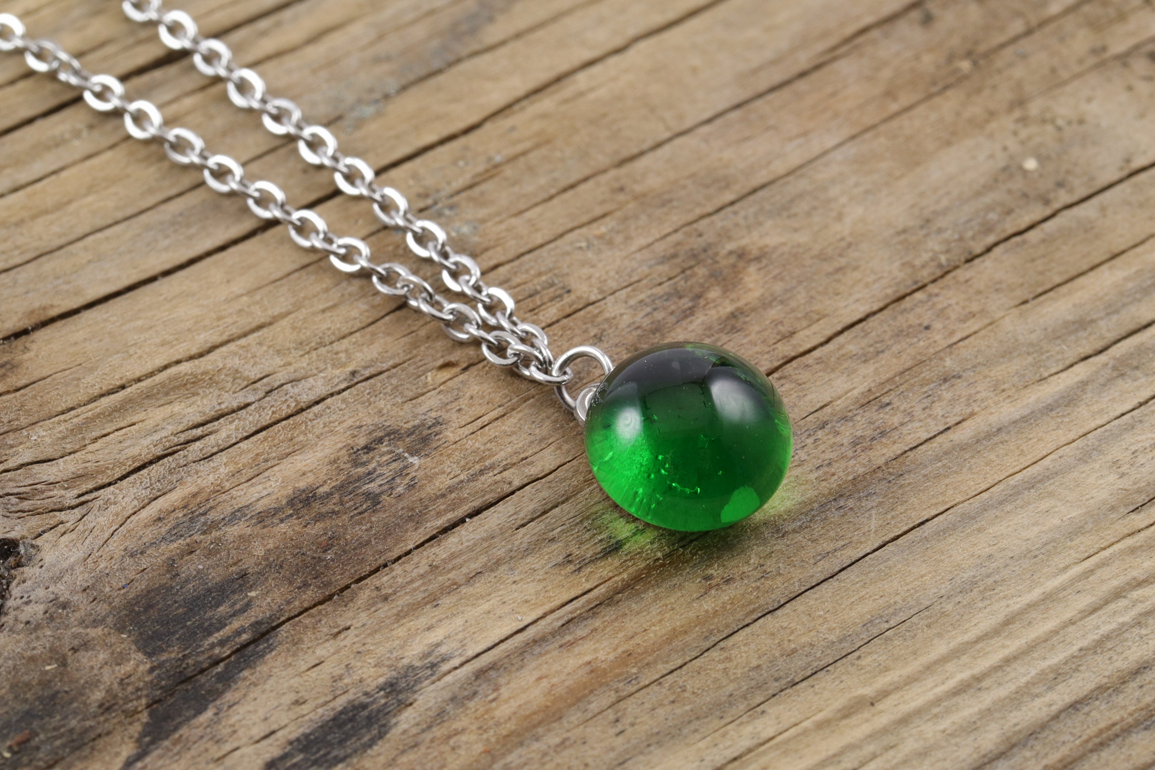 Kette mini Handmade grün - kurze Halskette 50cm Edelstahl